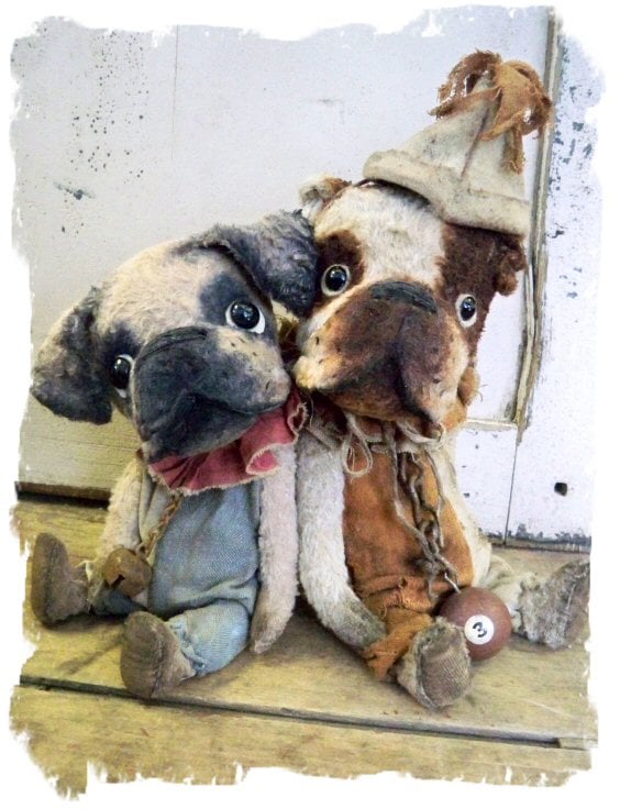 English Bulldog ~ 5" size - Old Vintage Style BlUE-Gray bulldog by Whendi's Bears.