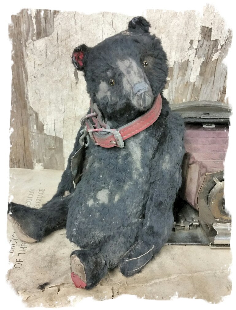 Schoenhut Toy Circus - 9" Vintage Style Aged BLACK dense Mohair Teddy Bear by Whendi's Bears
